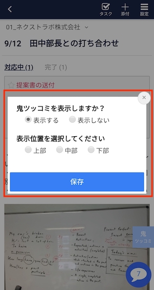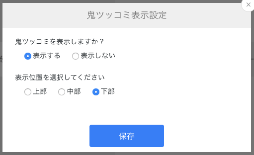 ③鬼ツッコミの「表示」や「表示位置」を選択できます。