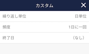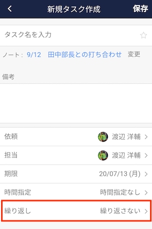 ①「タスク作成画面」にて、「繰り返し」の項目をタップします。