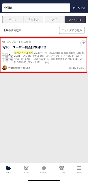 多くの皆様からのご要望を受け、ノートに添付したファイル名での検索が可能になりました!