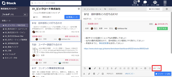 【機能改善】ノートに記載した内容を「元に戻す」「やり直し」する機能を搭載しました!