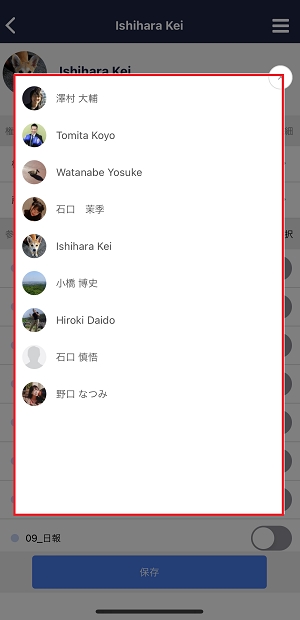 ④フォルダ参加設定のコピーを行いたいメンバーをタップします。