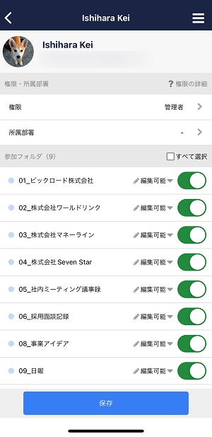 メンバー名をタップすると、「顔写真」「所属部署」「メールアドレス」を確認できます。