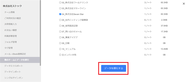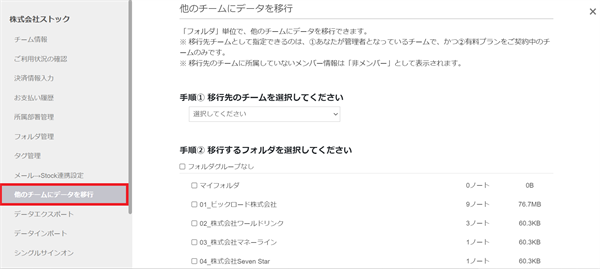 ※ 移行先のチームとして指定できるのは、①自身が「管理者」のチームかつ②有料プランをご契約中のチームのみです。