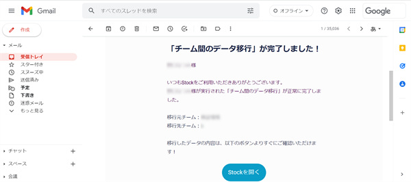 ⑤移行完了通知メールが受信できたら、データの移行が完了しています。