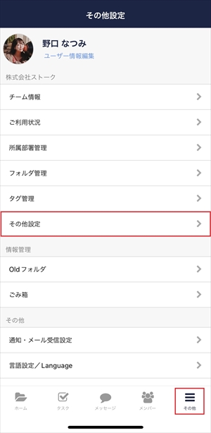 ①ヘッダーの「設定」から「チーム設定の変更」をクリックします。