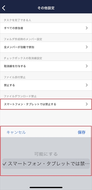 ※ファイルや画像のダウンロード禁止が反映されるのは、スマートフォン・タブレットのみです。