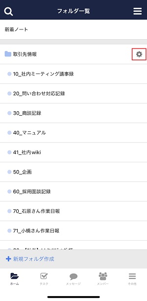 ①フォルダグループの右に表示されている歯車マークをタップします。