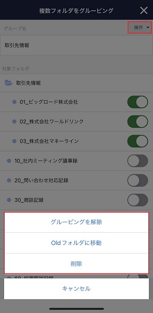 ②右上の「操作」をタップ後、「Oldフォルダに移動」または「削除」をタップします。