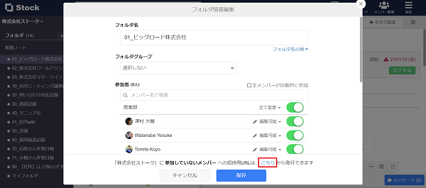 「フォルダ編集画面」から新規メンバーを招待する際「編集可否」を指定できるようになったことで、参加メンバーの管理がしやすくなりました!