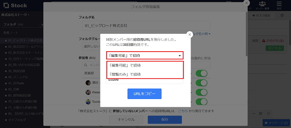 多くの皆様からのご要望を受け、「フォルダ編集画面」から新規メンバーを招待する際「編集可否」を指定できるようになりました!